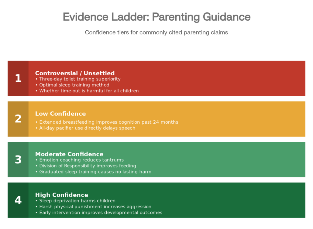 • Evidence snapshot: High confidence that warm, consistent, values-modeled parenting shapes long-term prosocial behavior; Moderate confidence on specific methods of moral instruction; Unsettled on the best way to resolve disagreements between cultural/religious and secular approaches.